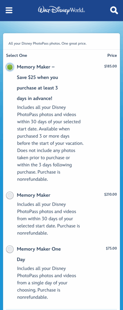 5日間パークに行く予定だったので、1週間前に185ドルのプランで購入!