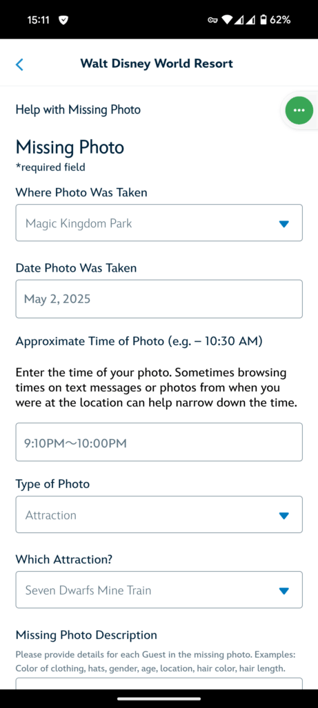 • アトラクションのどこらへんの列で乗車したか(覚えていれば)